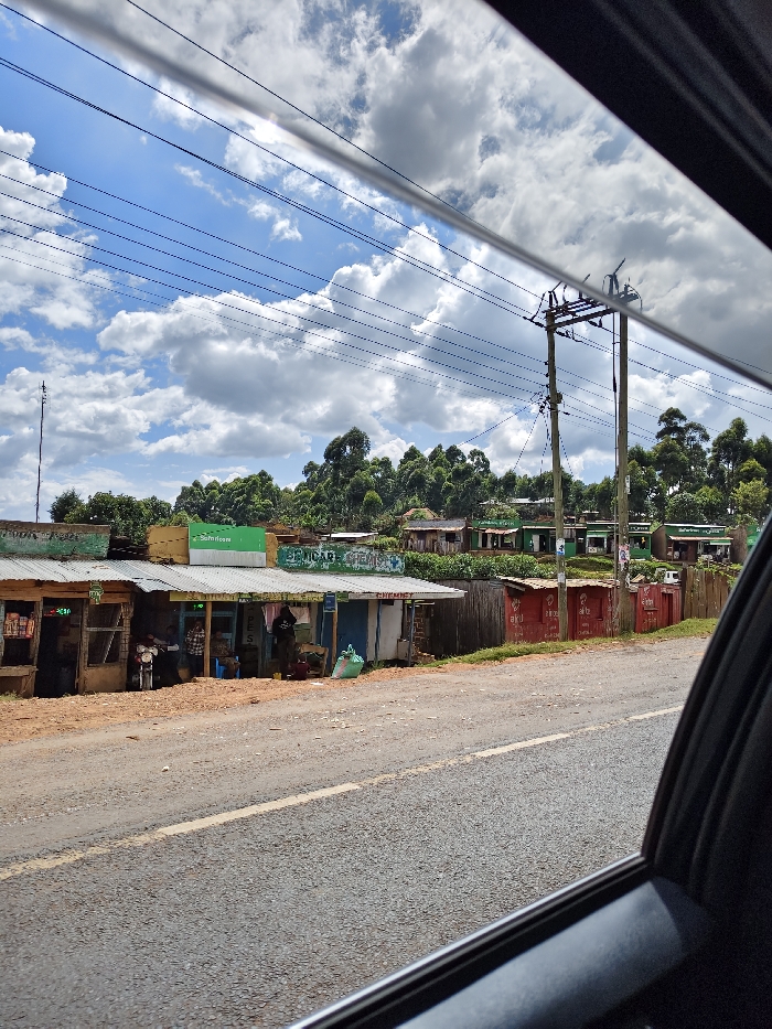 - "The image depicts a roadside commercial area in Nyansiongo ward, Kenya, viewed from inside a vehicle through its front right window, with the window frame partially visible in the foreground" by FM-Ys6e53, licensed under CC BY 4.0