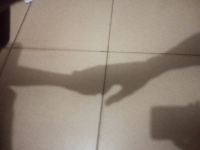 - "The image displays the elongated shadows of two human hands cast upon a light-colored, speckled tiled floor" by FM-3zxA12, licensed under CC BY 4.0