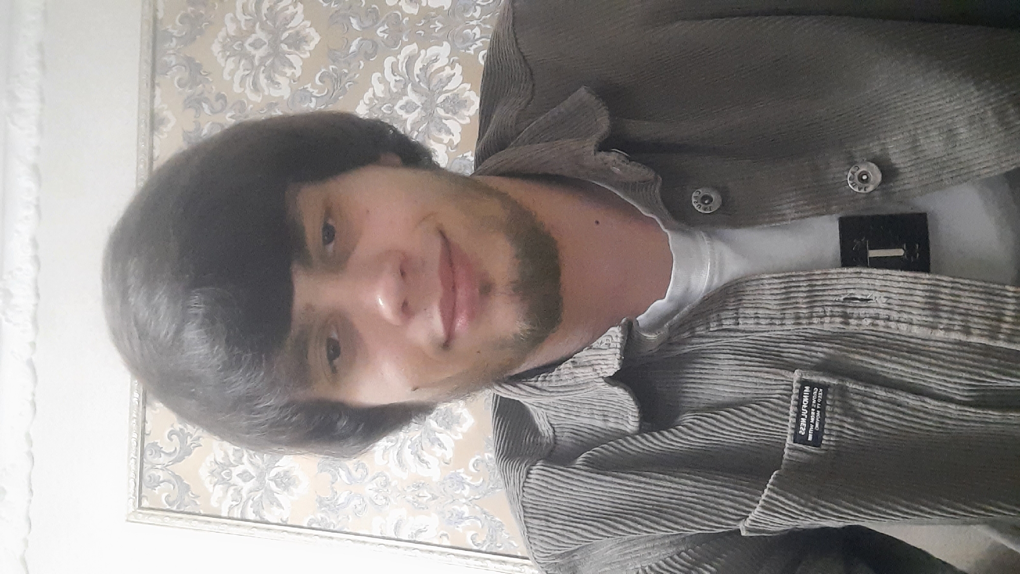 A young adult male subject is depicted in a head-and-shoulders portrait, indoors in Armavir, Russia