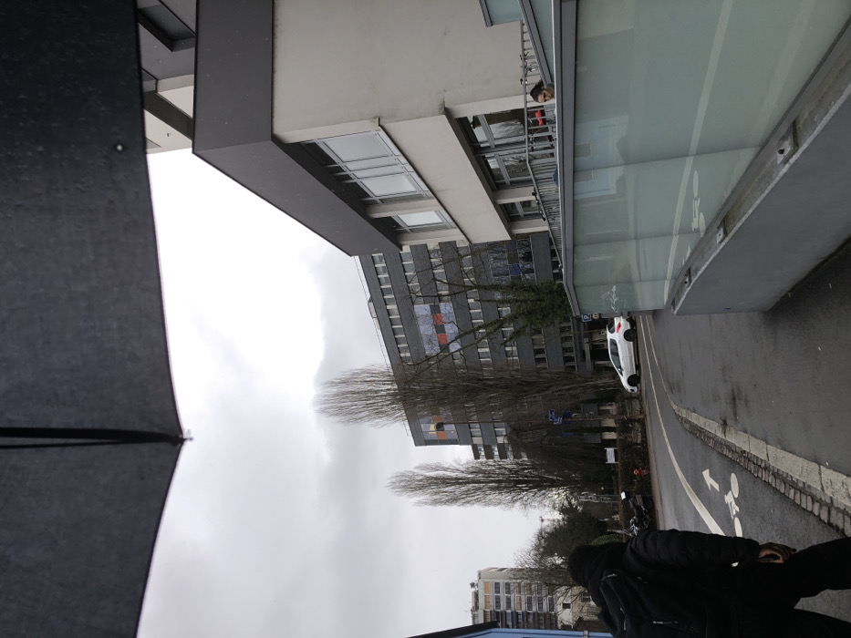 - "The image depicts an urban street scene in Schiltigheim, France, under an overcast sky, viewed from directly beneath a dark umbrella" by FM-vXe4F3, licensed under CC BY 4.0