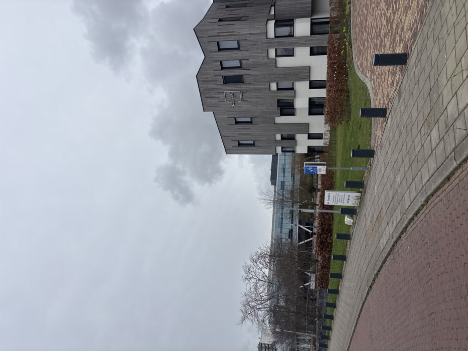An exterior view captures an urban scene in Leeuwarden, Netherlands, under a densely overcast sky