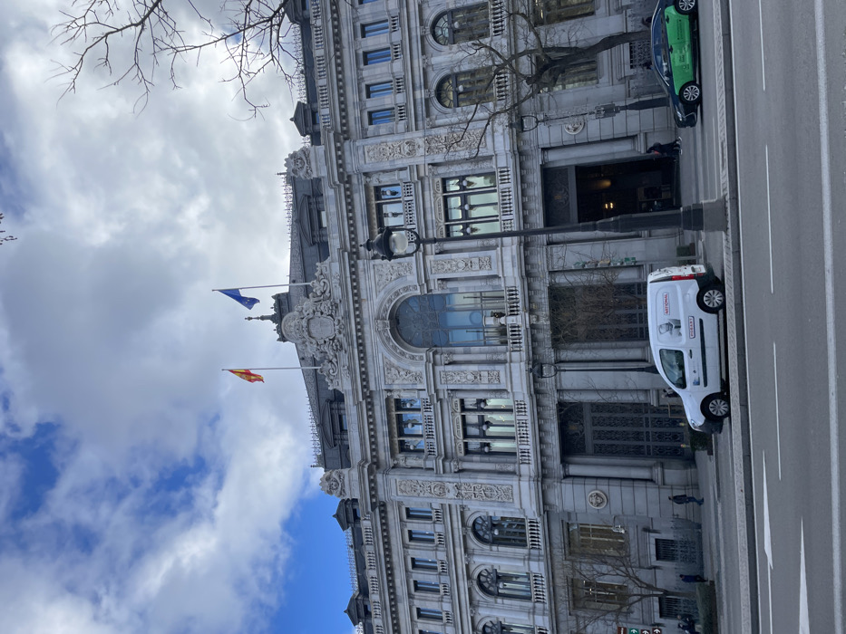 - "The image depicts the exterior of the Bank of Spain building, located at Plaza de Cibeles in Madrid, Spain, under a partially cloudy sky" by FM-QyzfH3, licensed under CC BY 4.0
