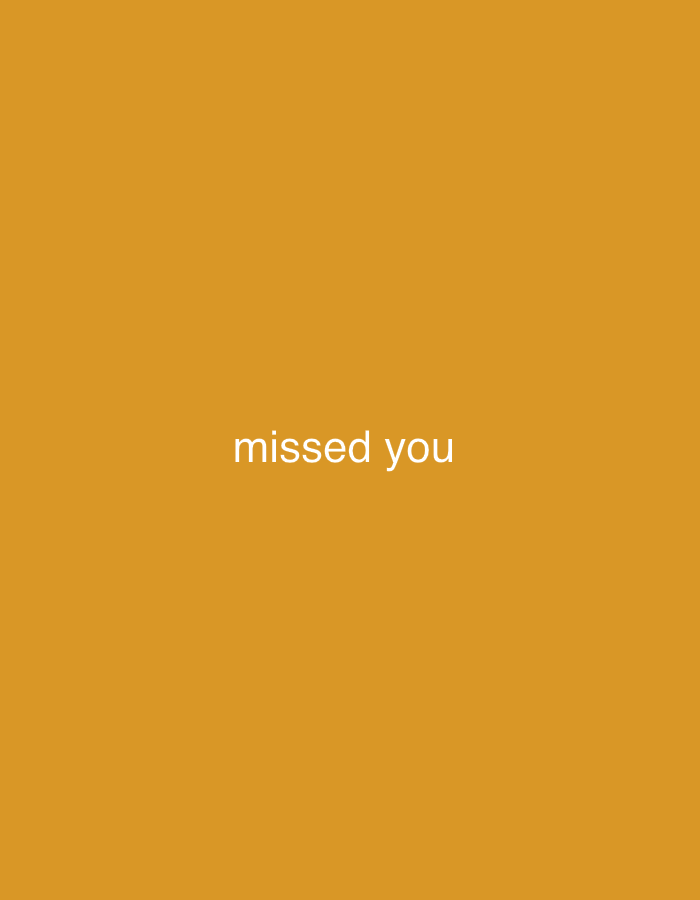 A simple image displays the text "missed you" in a light, sans-serif font. The text is centered both horizontally and vertically within a solid, flat background. The background color is a warm, muted yellow or a slightly desaturated orange. The overall tone is understated and heartfelt.