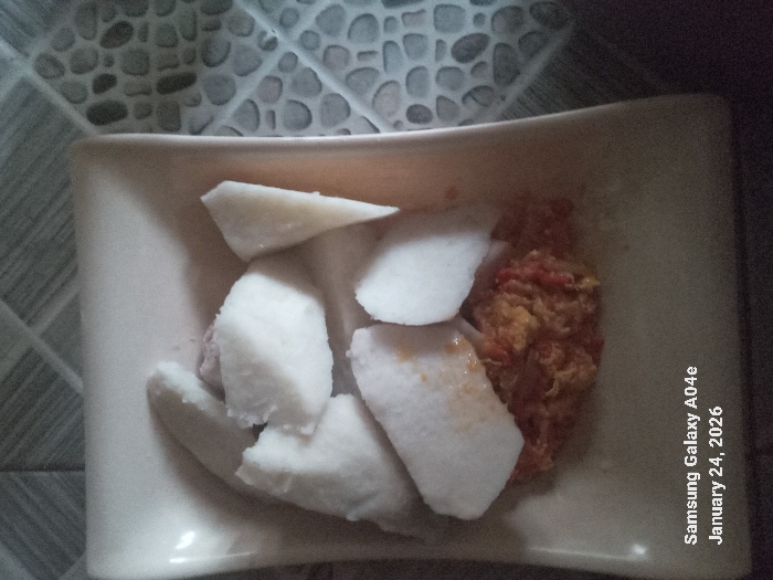 - "The image displays a meal served in a light-colored, rectangular dish, positioned on a tiled surface in Konike, Nigeria, captured on January 24, 2026, with a Samsung Galaxy A04e" by FM-Btj7B3, licensed under CC BY 4.0