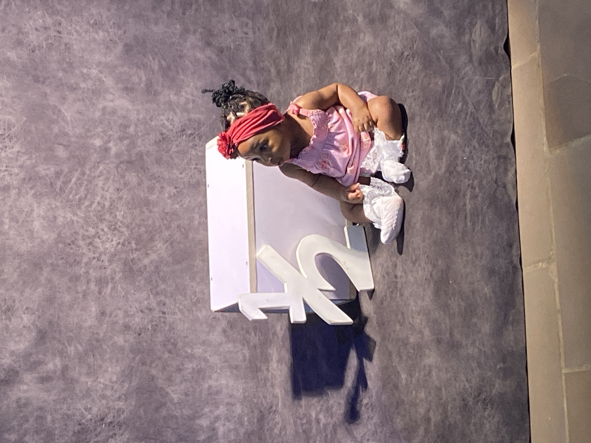 - "The image displays a studio portrait of an infant sitting on a mottled grey and purple seamless backdrop" by FM-owPsI2, licensed under CC BY 4.0