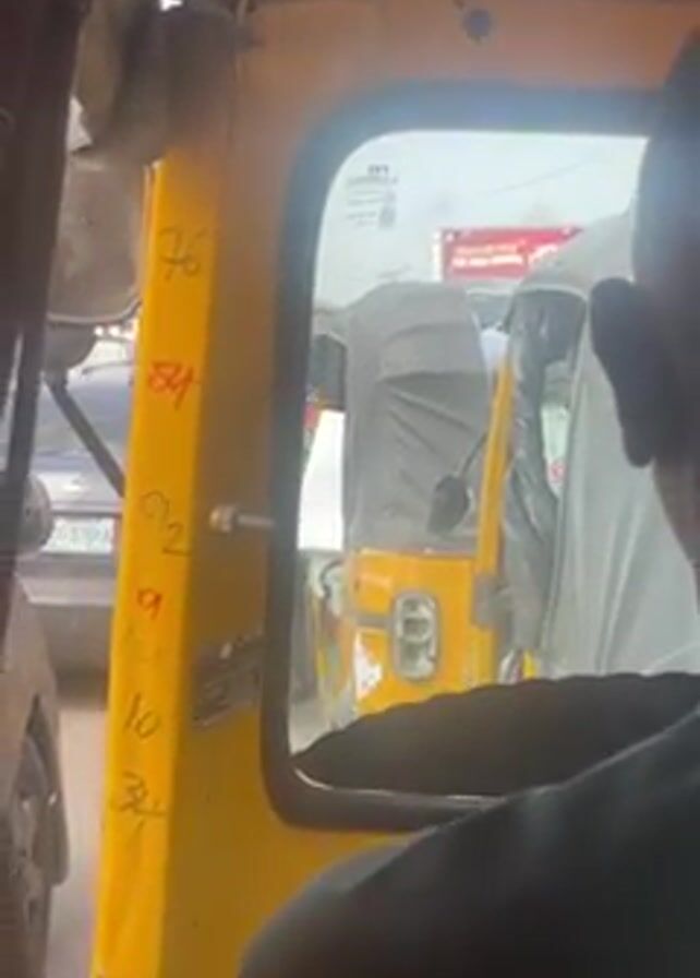 The video, taken from inside a yellow auto-rickshaw, shows the vehicle stopped in what appears to be traffic