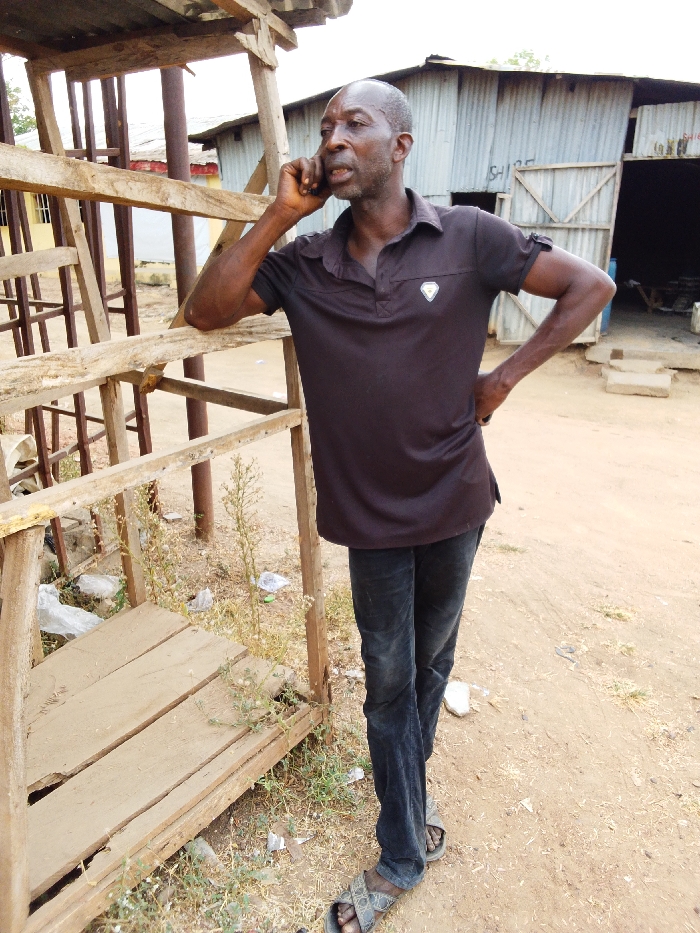 An adult male stands outdoors in Adankolo, Nigeria, facing slightly left