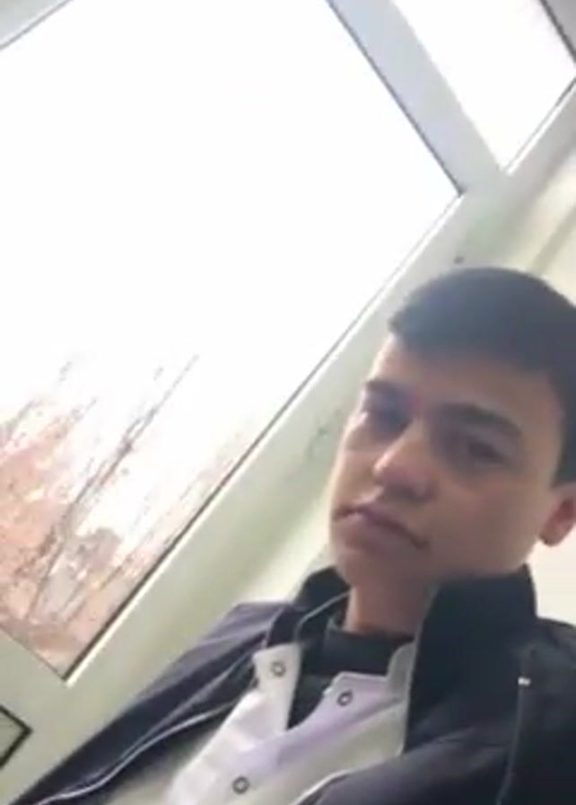 two young men. One of the men, wearing a black turtleneck and a white lab coat, is sitting with his hand propped on his face. The other is out of focus and is wearing a dark jacket. The setting is likely an indoor space with bright artificial lighting.