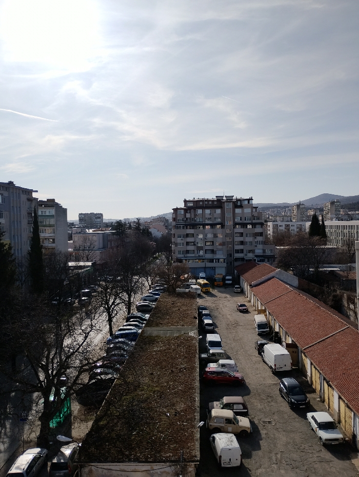 - "An elevated, oblique view captures an urban scene in Stara Zagora, Bulgaria, under a bright, partially cloudy sky with visible sun glare originating from the upper left" by FM-hcjos2, licensed under CC BY 4.0
