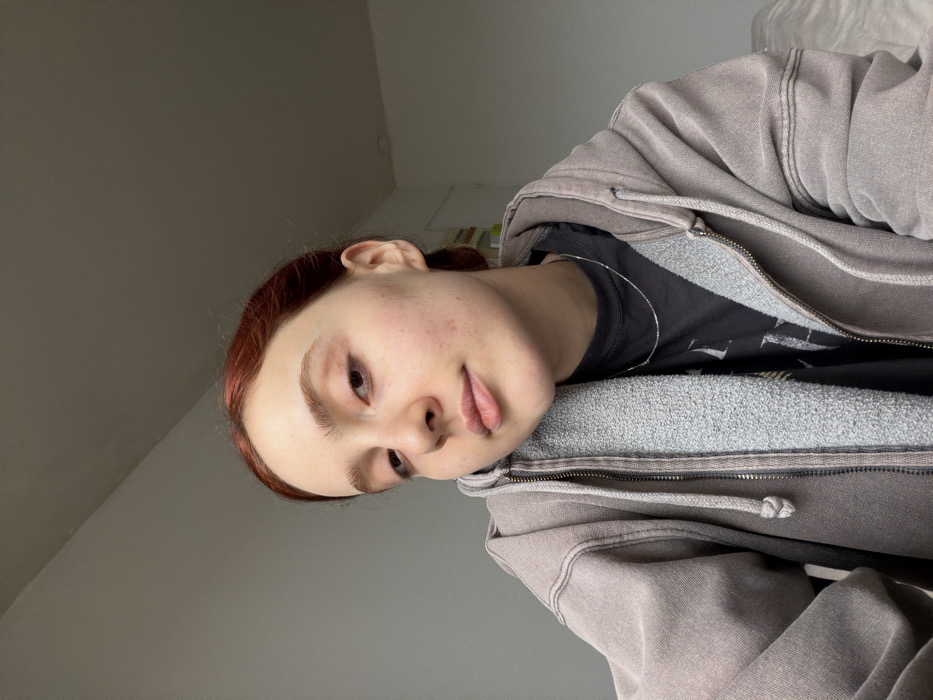 - "The image displays a head-and-shoulders portrait of a young adult individual with reddish-brown hair, fair skin, and light-colored eyebrows, looking directly into the camera with a neutral expression" by FM-iVf172, licensed under CC BY 4.0