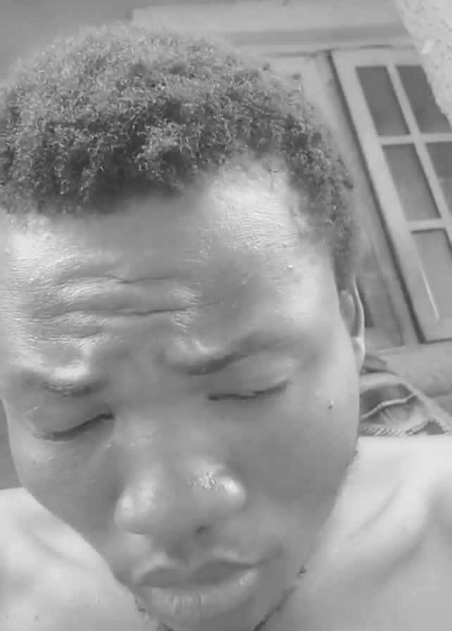 close-up of a man's face in black and white. He has short, curly hair and a slight beard. He is looking down at the beginning of the video. He then pursed his lips and slowly looks up, ending the video looking up. A window is visible in the background.