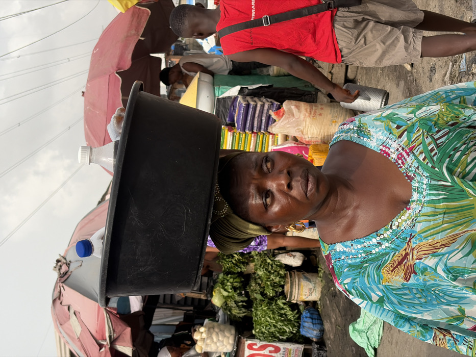 - "An adult woman of African descent is centrally depicted, balancing a large, empty, black plastic basin on her head, containing two plastic bottles (one white with a blue cap, one clear with a white cap)" by FM-rkm0j2, licensed under CC BY 4.0