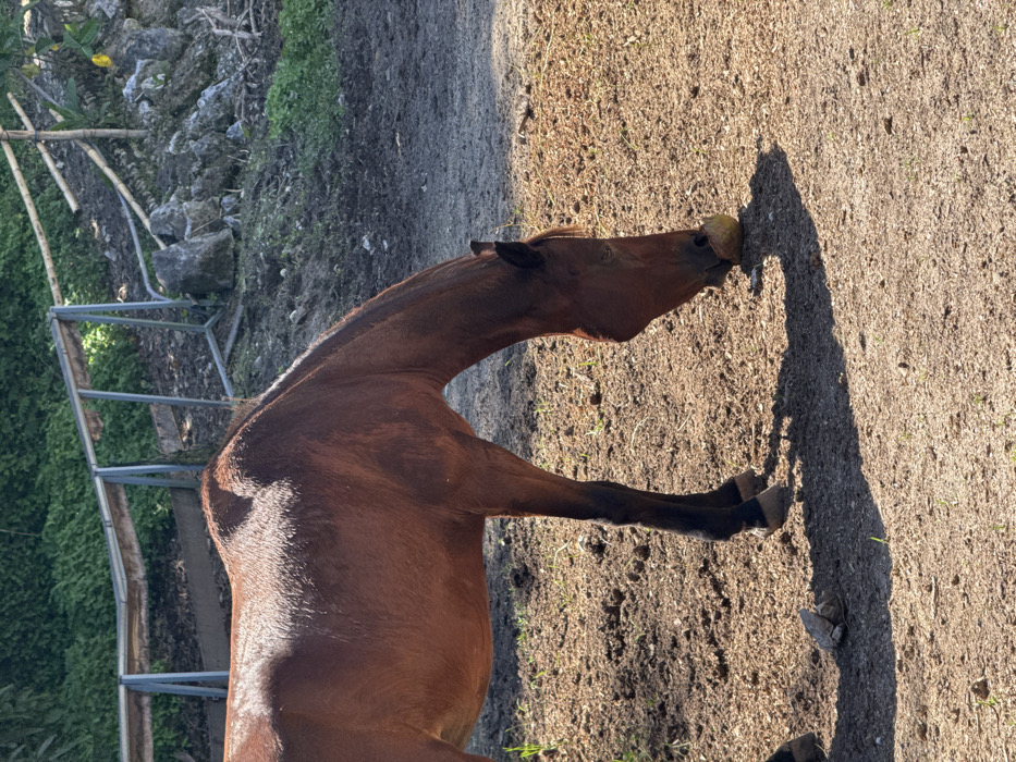 - "The image depicts an outdoor scene in Kutuh, Indonesia, featuring a single reddish-brown horse" by FM-3l5D82, licensed under CC BY 4.0