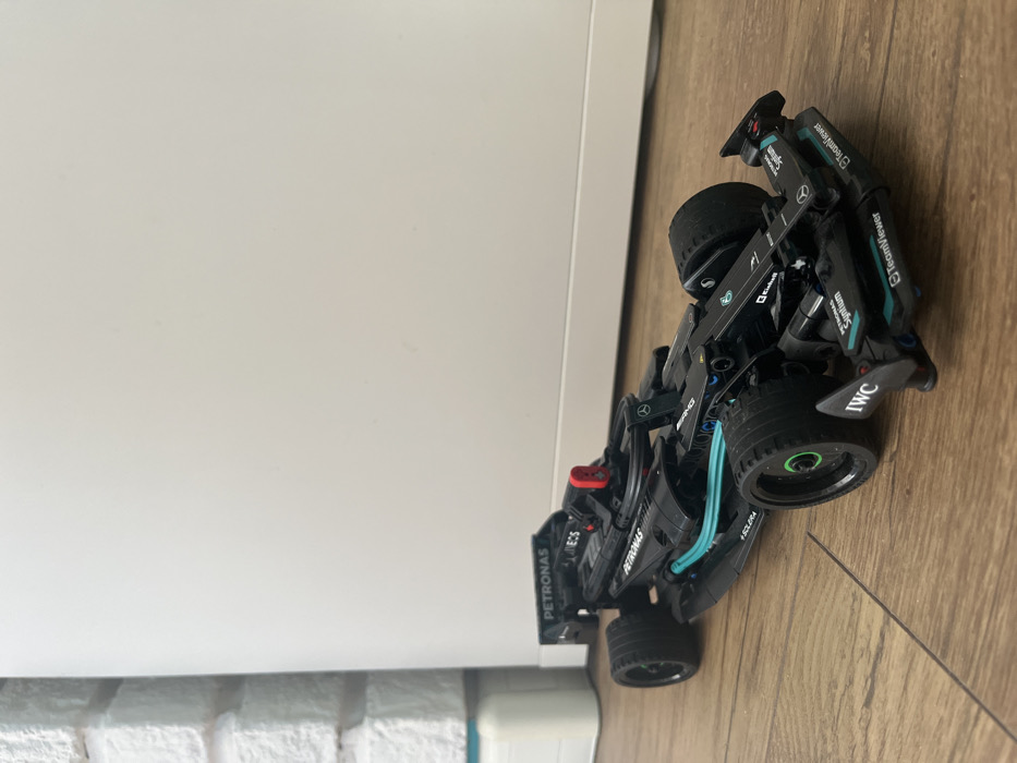 - "An assembled black and teal LEGO Technic model of a Mercedes-AMG Petronas F1 W12 E Performance race car rests on a light brown wooden floor with visible grain, located in the city of Pokrovnik, Bulgaria" by FM-8osjd2, licensed under CC BY 4.0