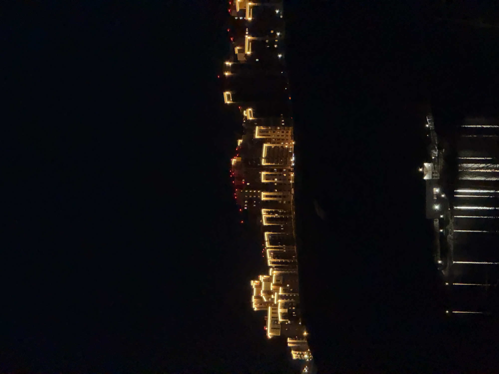 - "An aerial view at night, likely from a high vantage point, depicts a body of water with illuminated structures along its edge" by FM-7Ie5F2, licensed under CC BY 4.0