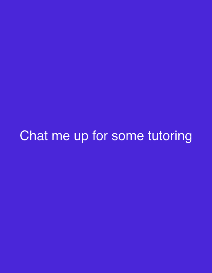 - "A vibrant purple background displays the white text "Chat me up for some tutoring"" by FM-mFVo23, licensed under CC BY 4.0