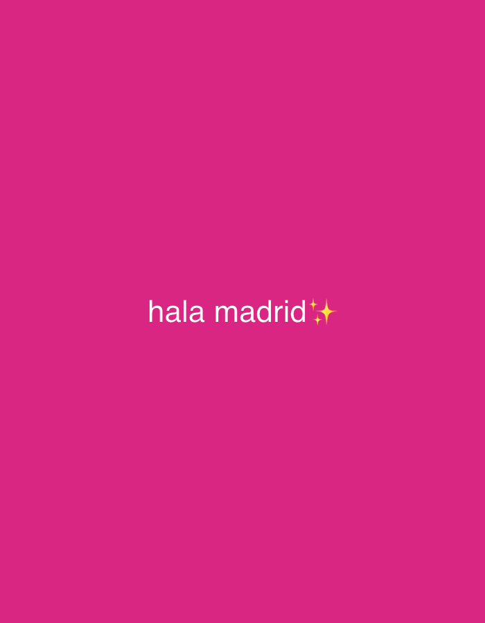 The image consists of a solid, uniform fuchsia background. Centered horizontally and vertically on this background is the phrase "hala madrid" rendered in white sans-serif text. Immediately following the text are two yellow four-pointed star emojis (✨). No people, objects, actions, or environmental features are discernible beyond the colored background and text. The image provides no visual information to determine a geographical location, including any specific city such as Casablanca, Morocco.