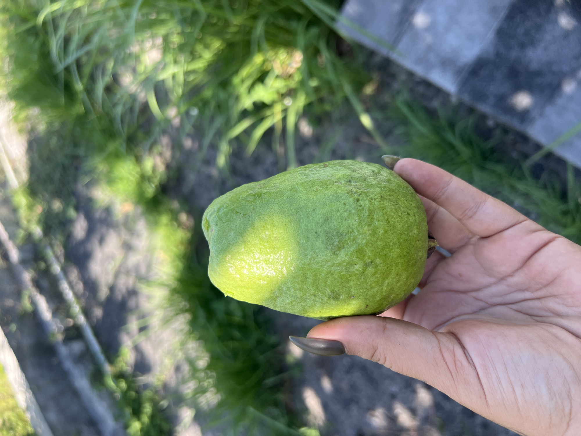 - "A hand holds a large, green guava fruit in an outdoor setting" by FM-kCD023, licensed under CC BY 4.0