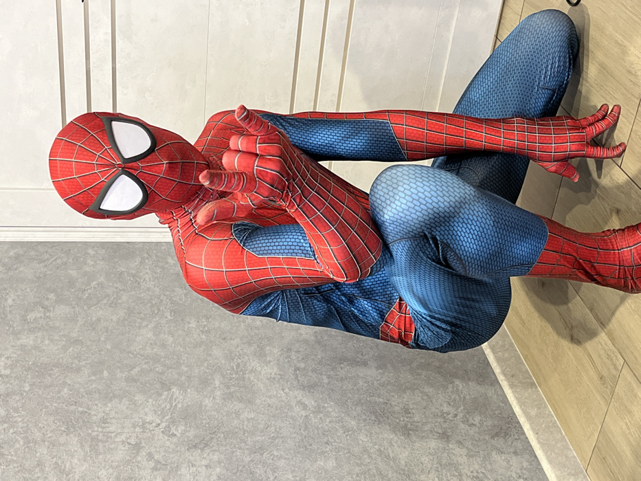 - "An indoor scene, situated in Krasnodar, Russia, features a single individual fully encased in a red and blue Spider-Man costume" by FM-XlCcP2, licensed under CC BY 4.0