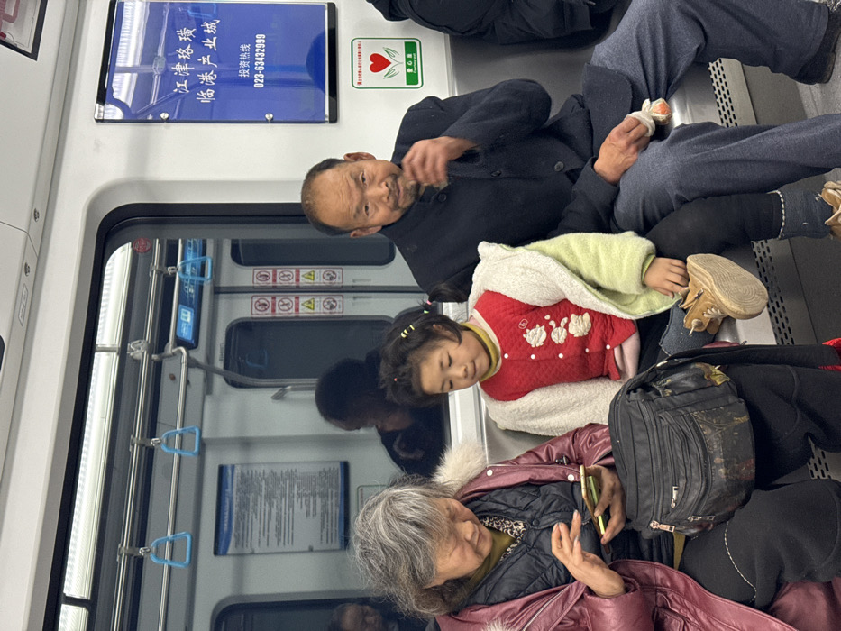 - "This image captures three individuals seated inside a subway train in Chongqing, China, within the specified city of Tiaodeng" by FM-EsMgg1, licensed under CC BY 4.0
