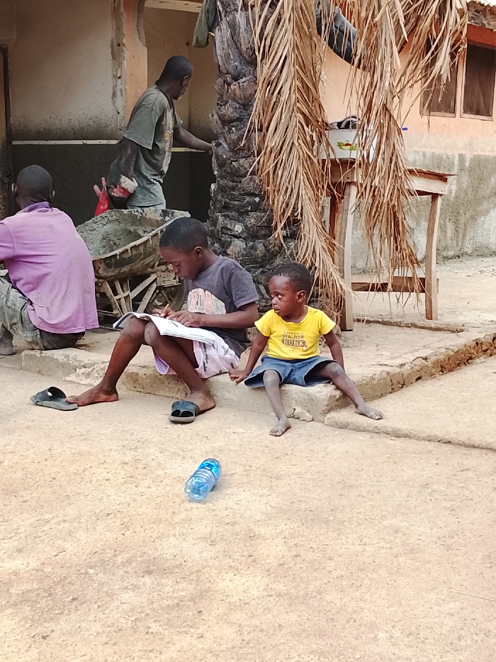 The scene in Akwanga, Nigeria, depicts an outdoor area adjacent to a building