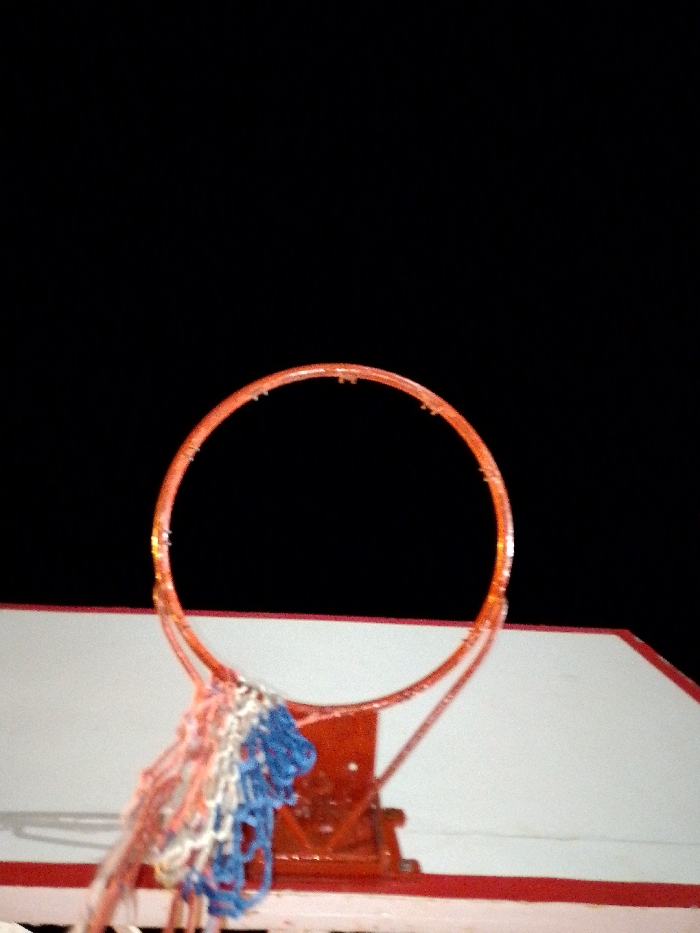 - "This image presents an upward-angled, close-up view of a basketball hoop and a segment of its backboard at night" by FM-zbrwr1, licensed under CC BY 4.0