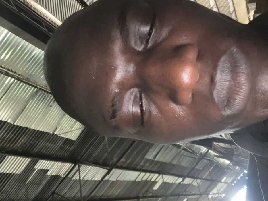 A close-up, upward-angled portrait of a dark-skinned individual is depicted in what is identified as Ikeja, Nigeria