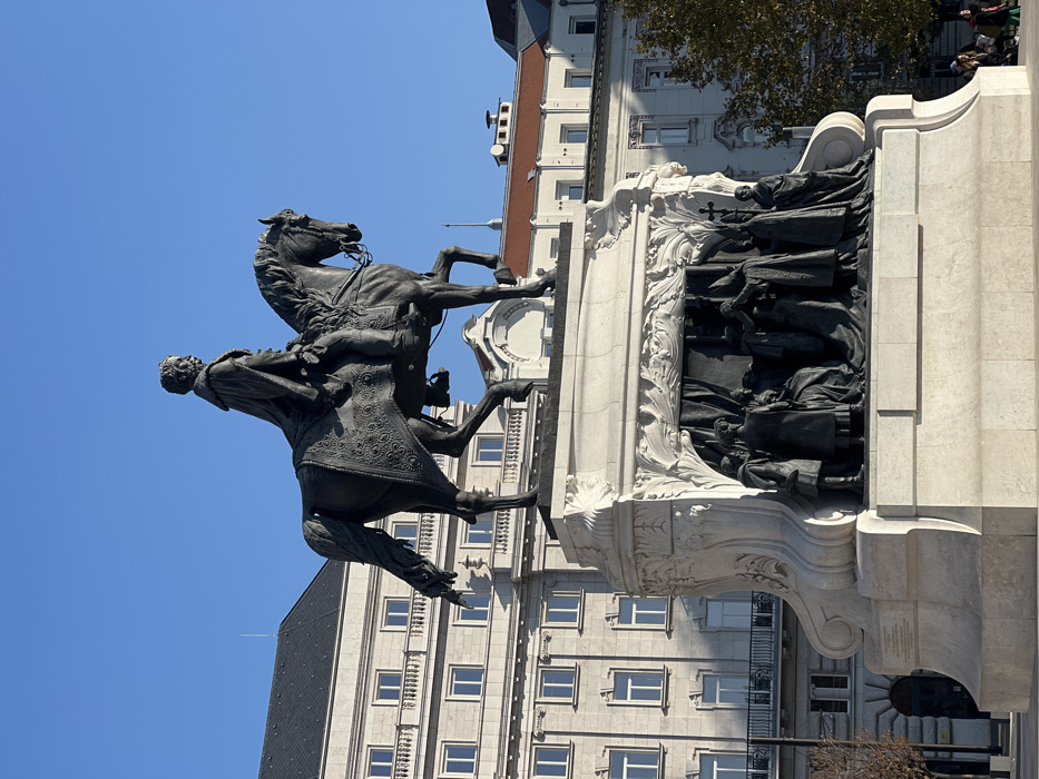 - "The image displays a bronze equestrian statue of a male figure atop a multi-tiered white stone pedestal, located in Kossuth Lajos Square, Budapest, Hungary" by FM-oJePr1, licensed under CC BY 4.0