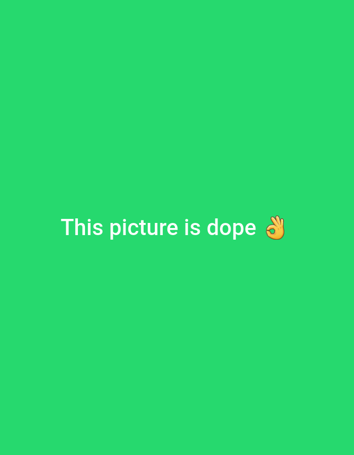 The image is a green background with the white text, "This picture is dope." To the right of "dope" is an "OK hand" emoji.