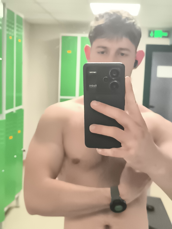 - "A shirtless male individual is depicted in a mirror selfie, holding a black smartphone (displaying "Redmi" inverted on its back, indicating the brand) in his right hand, obscuring a portion of his face and upper torso" by FM-bMeLG3, licensed under CC BY 4.0