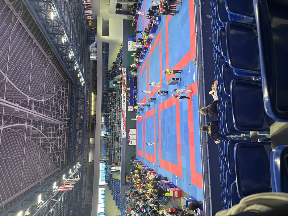 - "The image depicts an indoor sports arena, specifically an event identified by a banner as the "KARATE GRAND PRIX SLOVAKIA BRATISLAVA" by FM-BGKiq2, licensed under CC BY 4.0