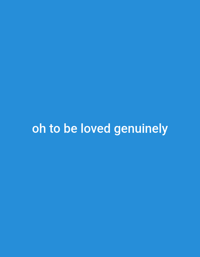 The image features a solid light blue background. Centered on the image is the phrase "oh to be loved genuinely" in a clear, sans-serif white font. The font size is moderate, ensuring the text is easily readable against the contrasting background. There are no other visual elements present in the image.