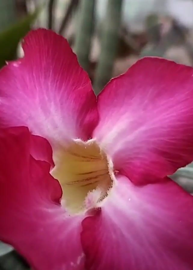 close-up view of a pink and white flower. The camera zooms in to the center of the flower, revealing its yellow and white interior.