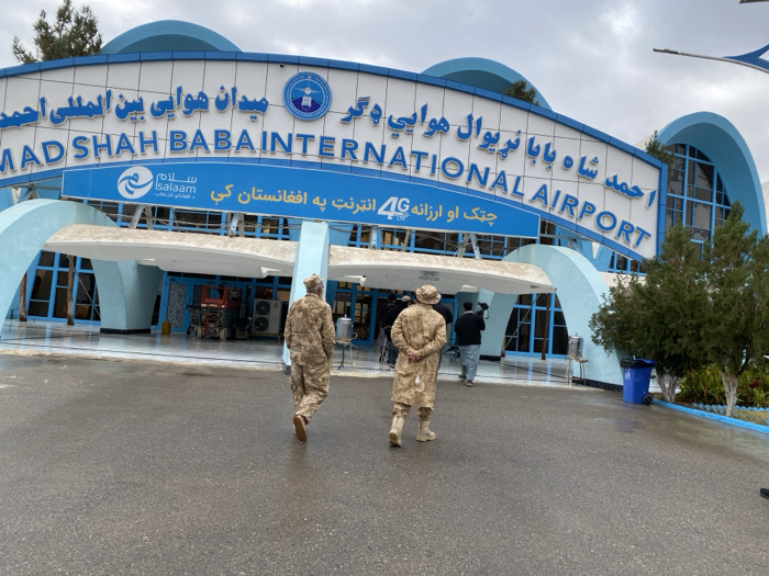 - "The image displays the exterior of Ahmad Shah Baba International Airport in Kandahar, Afghanistan, under an overcast sky" by FM-B5wmg2, licensed under CC BY 4.0