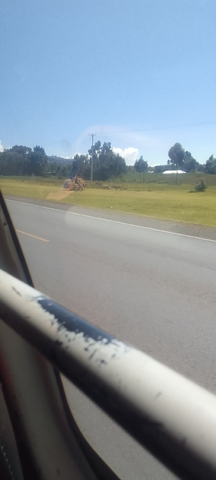 The image depicts a roadside scene in Naivasha East ward, Kenya, observed from a vehicle