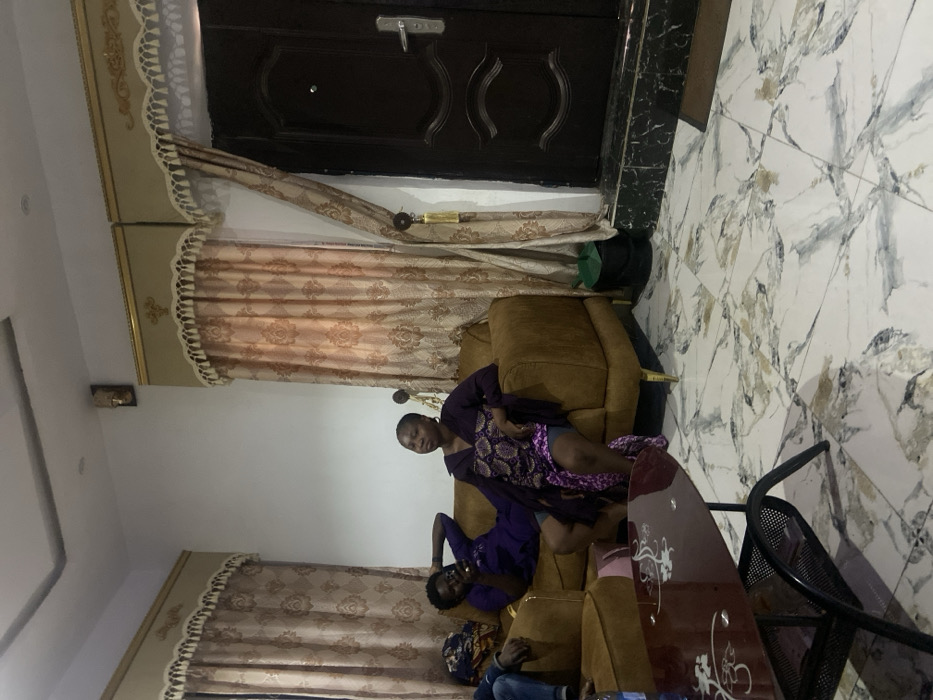 The image displays an interior scene in Ungongo, Nigeria, appearing to be a living room or lounge