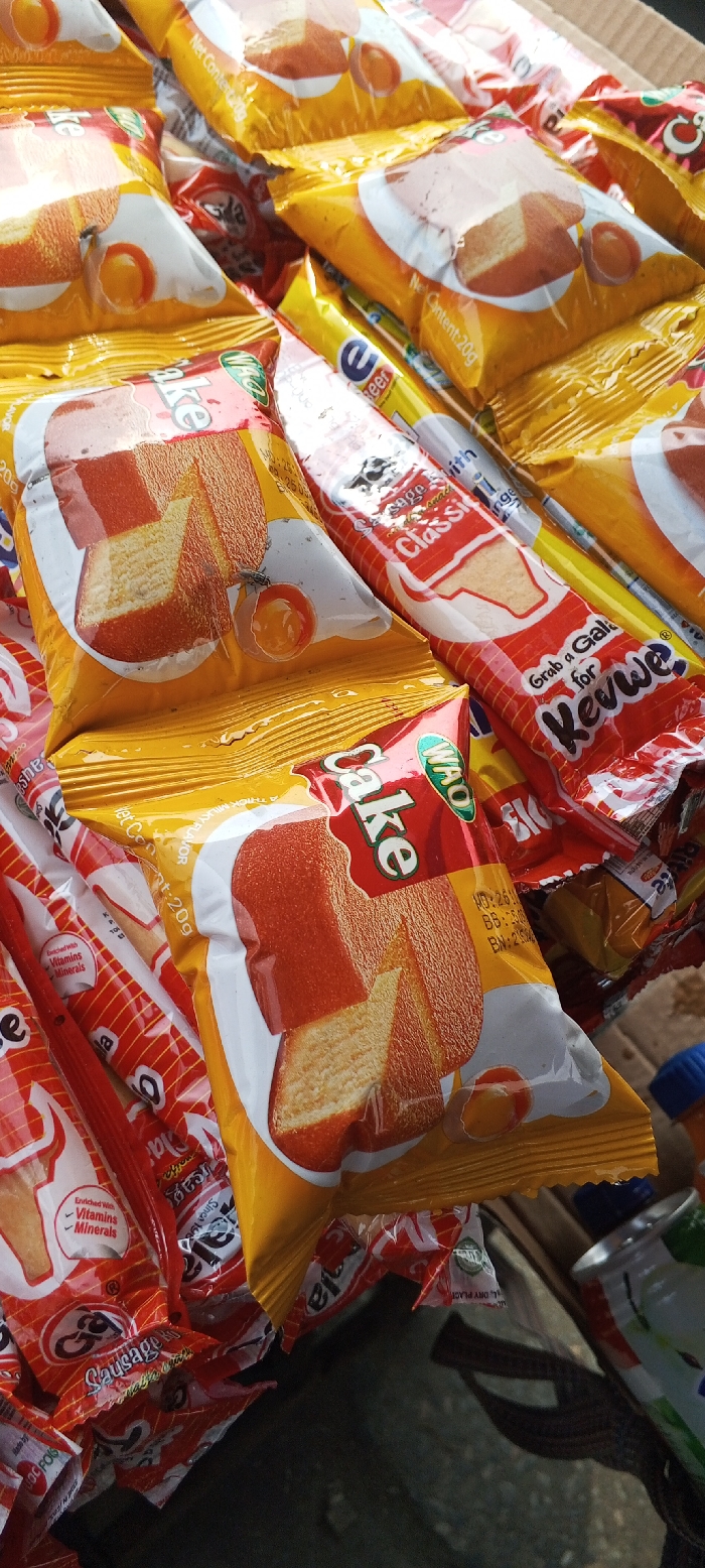- "The image displays a close-up, elevated view of multiple individually packaged snack items, likely on a market stall or counter in Awjaw, Nigeria" by FM-6yfeV2, licensed under CC BY 4.0
