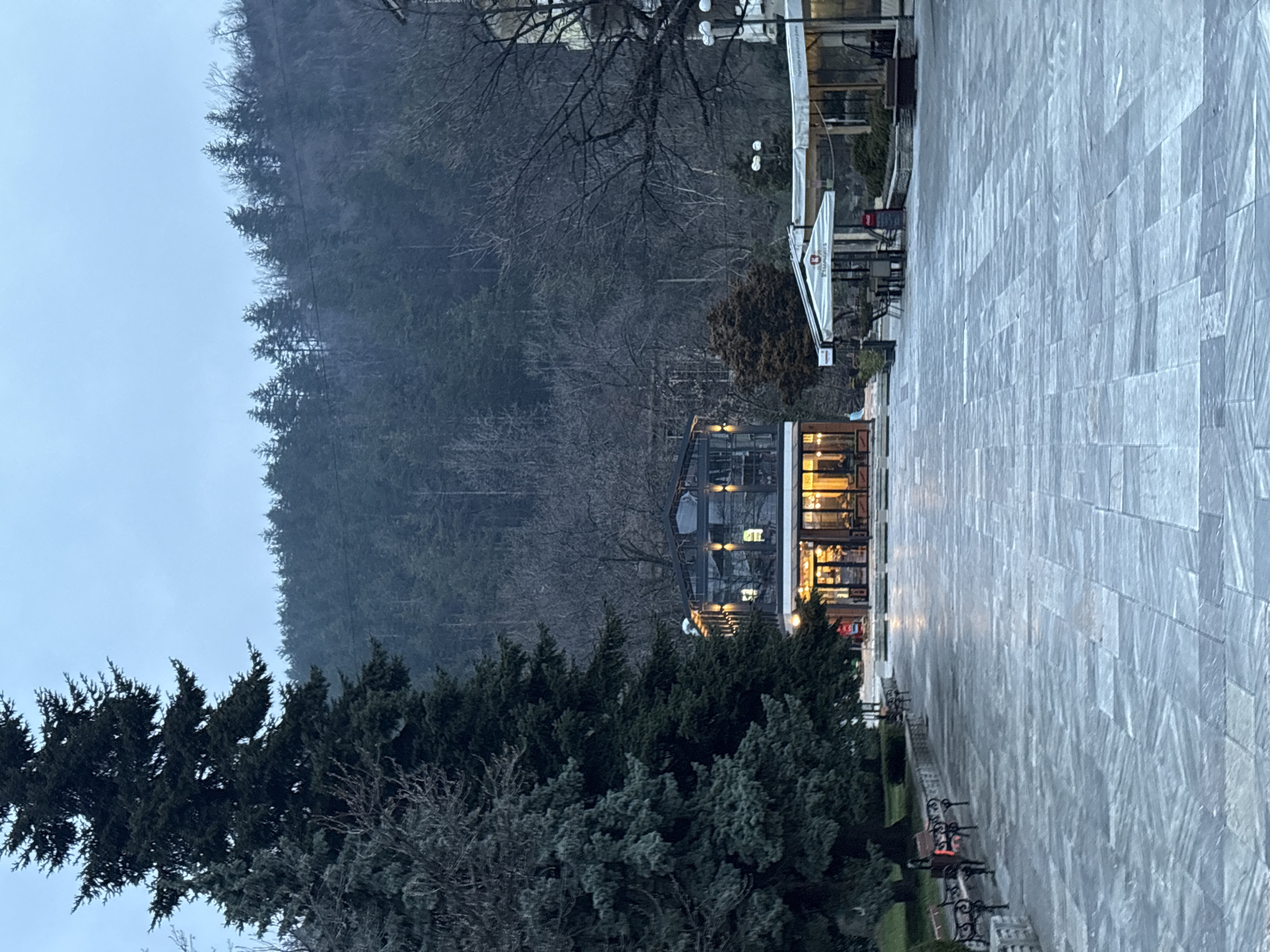 - "The image displays a deserted public square or promenade in Berkovitsa, Bulgaria, at the base of a densely forested hill, likely during twilight or early morning under an overcast sky" by FM-O2Oz63, licensed under CC BY 4.0