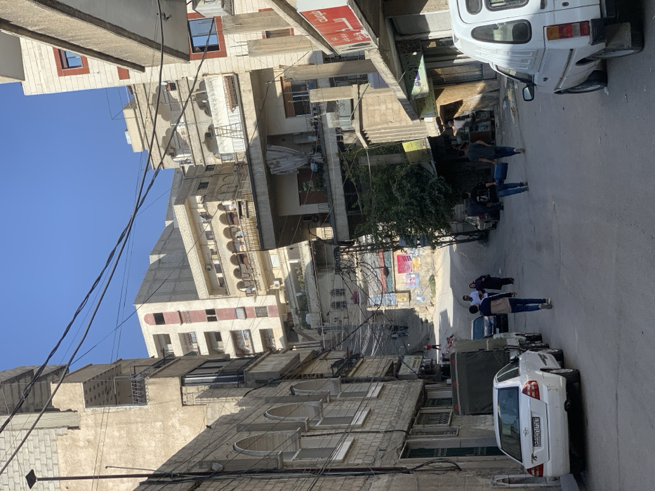 The image depicts a daytime street scene in a hilly urban area of Ma'raba, Syria