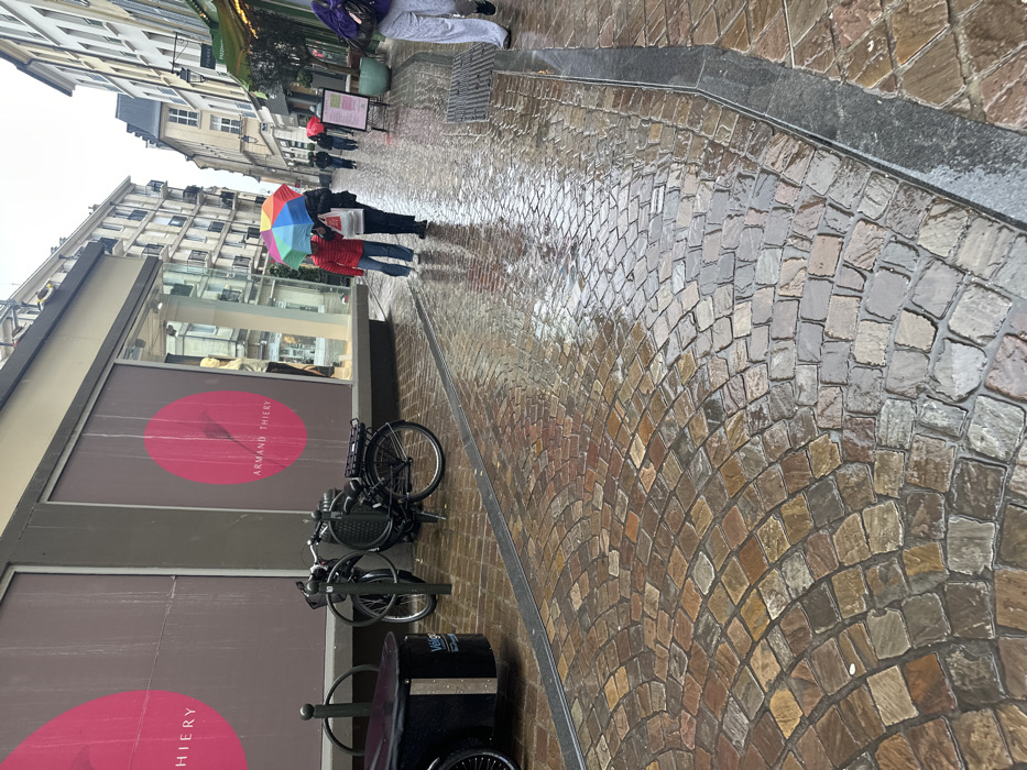 - "The image depicts a wet cobblestone pedestrian street, identified as Rue des Louviers in Saint-Germain-en-Laye, France, under an overcast sky" by FM-6lrLw2, licensed under CC BY 4.0