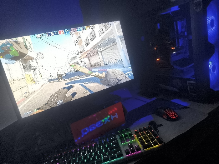 - "A dimly lit interior scene in Daskot, Bulgaria, displays a gaming computer setup" by FM-aXp2A2, licensed under CC BY 4.0