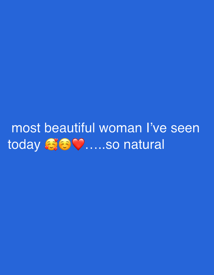 A royal blue background displays the text "most beautiful woman I've seen today" accompanied by the "smiling face with heart eyes" emoji, a red heart emoji, and the words "...so natural." The text and emojis are centered horizontally on the image. The message conveys admiration for someone's beauty, emphasizing their natural appearance.