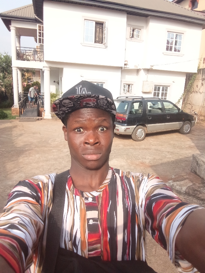 In Orie Uratta, Nigeria, a young male with dark skin is depicted in a close-up selfie, occupying the foreground