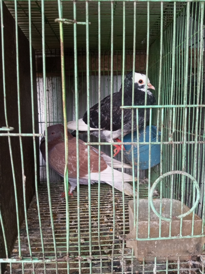 - "Two pigeons reside inside a green, weathered cage" by FM-YnnIF2, licensed under CC BY 4.0
