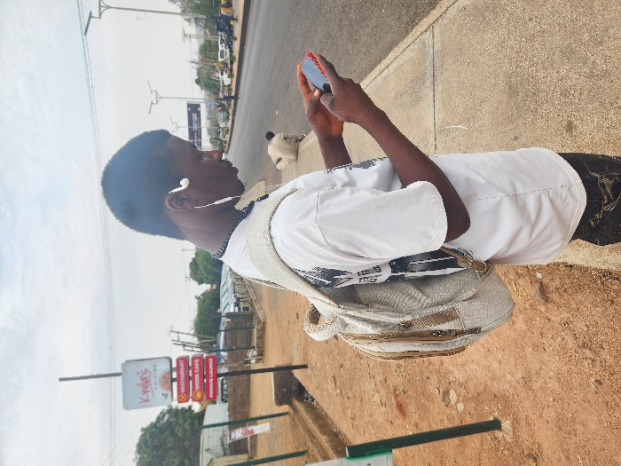 A young male, of apparent African descent, stands on a concrete sidewalk near K'Wila's Cuisine in Jos, Nigeria