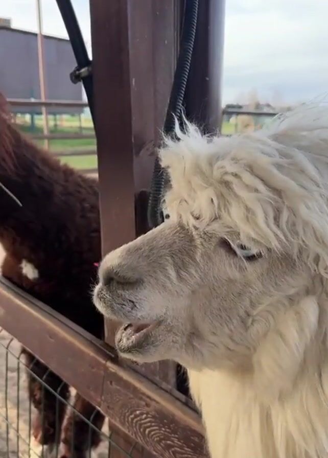 A short video shows two alpacas in a fenced enclosure at an outdoor location