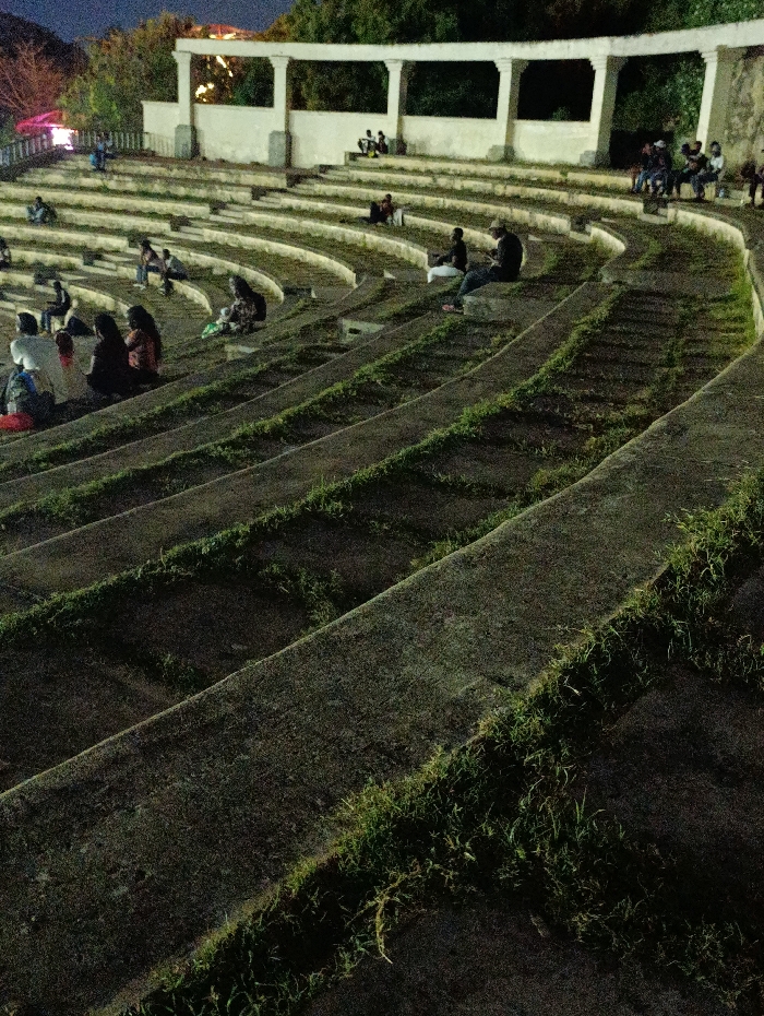 - "The image displays an outdoor, concrete-tiered amphitheater at night, located in the city of Unknown, Unknown" by FM-d4PGJ2, licensed under CC BY 4.0