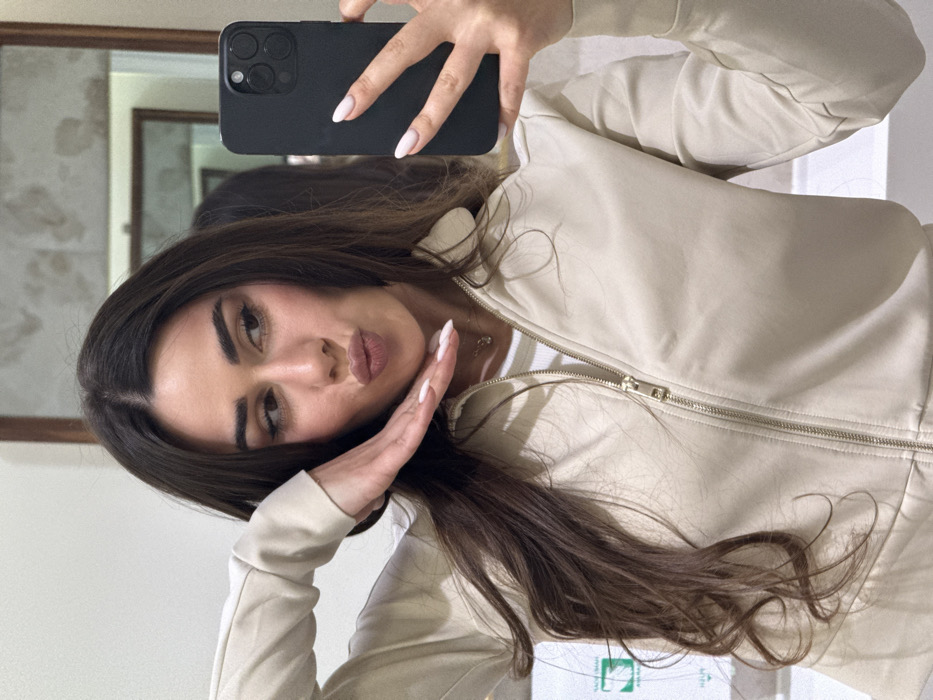 - "A female subject with long, dark brown hair is captured in a mirror selfie, extending from the chest up" by FM-yX2Js2, licensed under CC BY 4.0