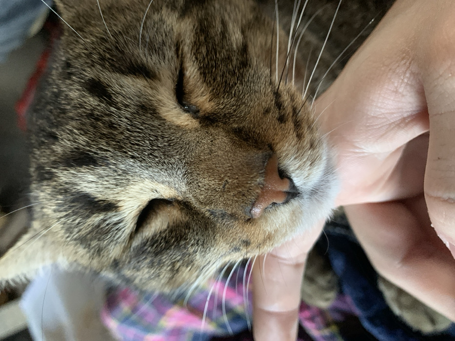 - "A close-up image depicts a domestic tabby cat being petted by a human hand" by FM-Wg1Ah2, licensed under CC BY 4.0