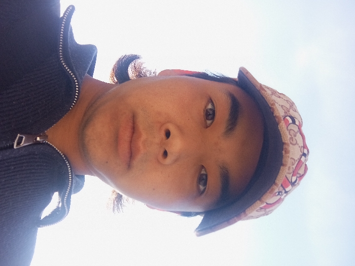 A low-angle, close-up portrait depicts a single male subject, appearing to be of East Asian or Central Asian ethnicity, estimated as a young adult